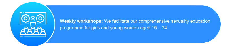 Our programmes focus primarily on sexual reproductive health and rights (SRHR), comprehensive sexual education (CSE), access to HIV prevention methods, and personal development.